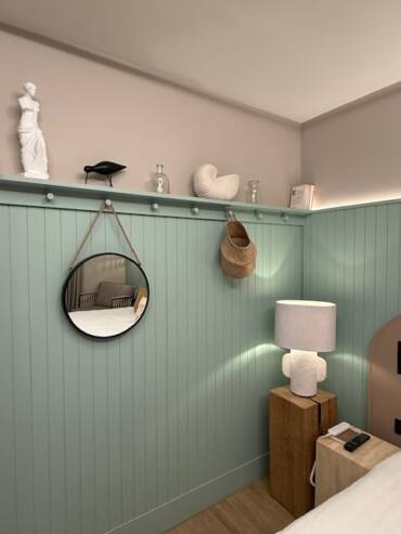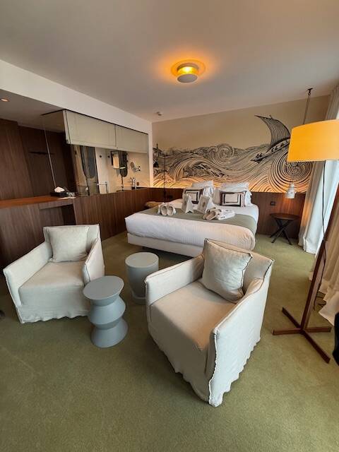 On retrouve une belle présence de matières naturelles, une richesse d’accessoires décoratifs — même dans les chambres, ce qui est assez rare — et de nombreux clins d’œil à l’univers marin, toujours traités avec subtilité.