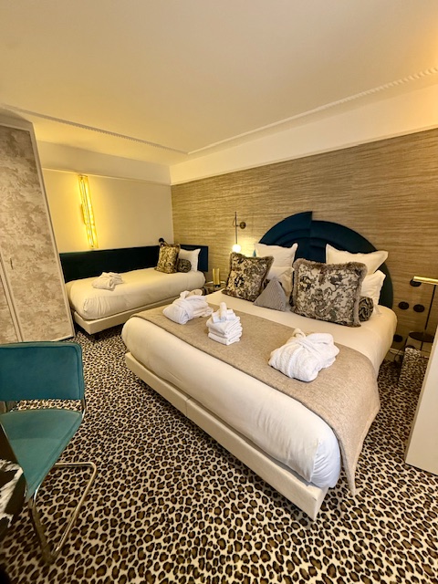 Un salon professionnel où je me rends pour rencontrer des fournisseurs c’est l’occasion d’un séjour Parisien. J’ai choisi cet hôtel pour son esthétique bien sûr, mais aussi car c’est lieu à taille humaine, très soigné, avec une décoration actuelle, chaleureuse et affirmée. Matériaux, textiles, choix des couleurs… tout était pensé pour créer une ambiance accueillante et cohérente.