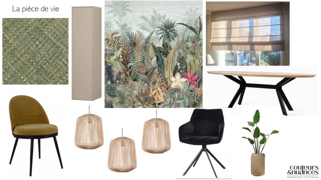 Les planches d’ambiance de la pièce de vie de la maison de saint Cast.
