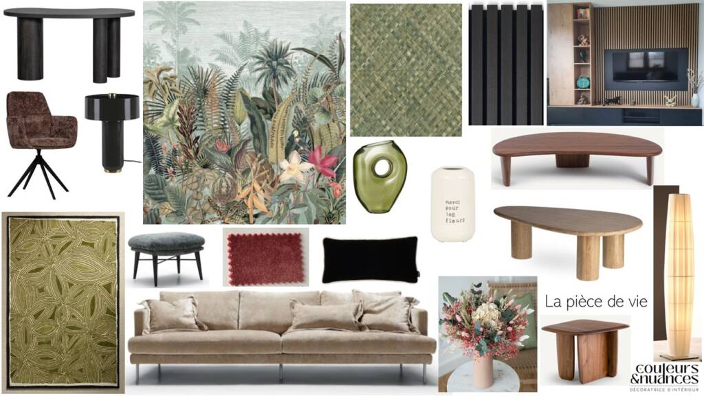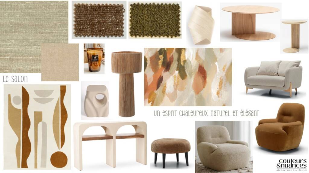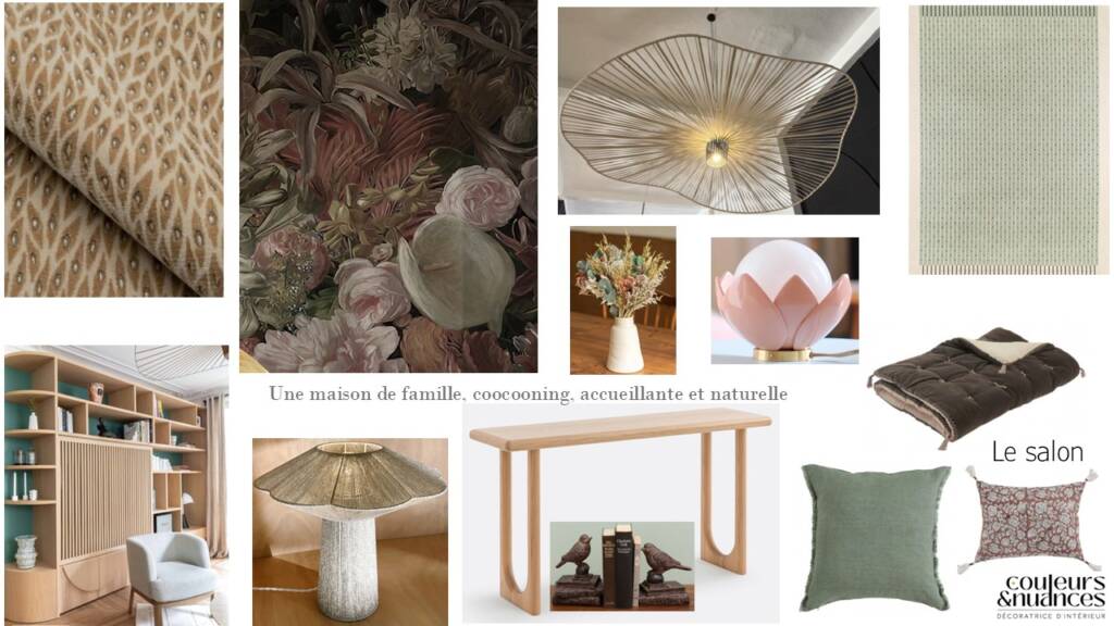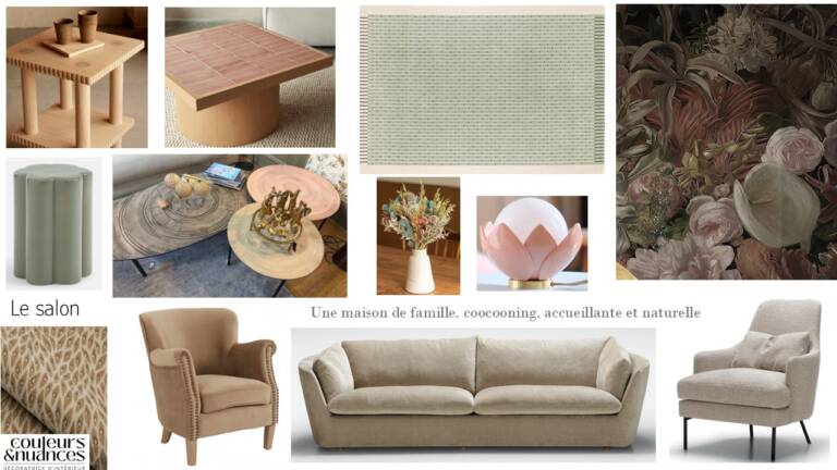 Les planches d’ambiance de la pièce de vie de la maison de la Poterie.