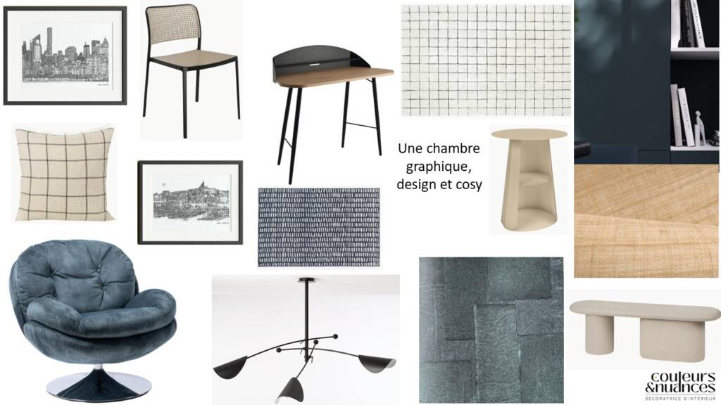 Les planches d’ambiance de la chambre du fils de la maison de Saint Cast.
