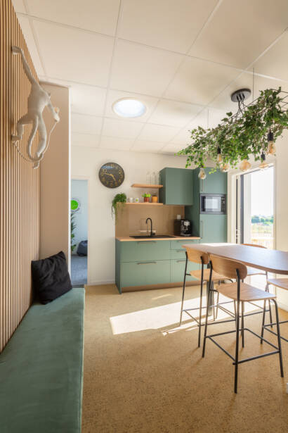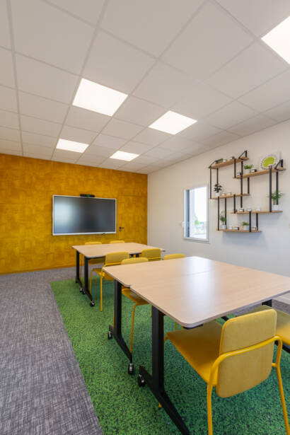 Les salles de réunion, les bureaux, les espaces d’accueil et les zones de pause ont tous été pensés pour créer une ambiance douce, fluide et accueillante. L’objectif était simple : que chacun ait envie d’y rester, d’échanger, de partager.